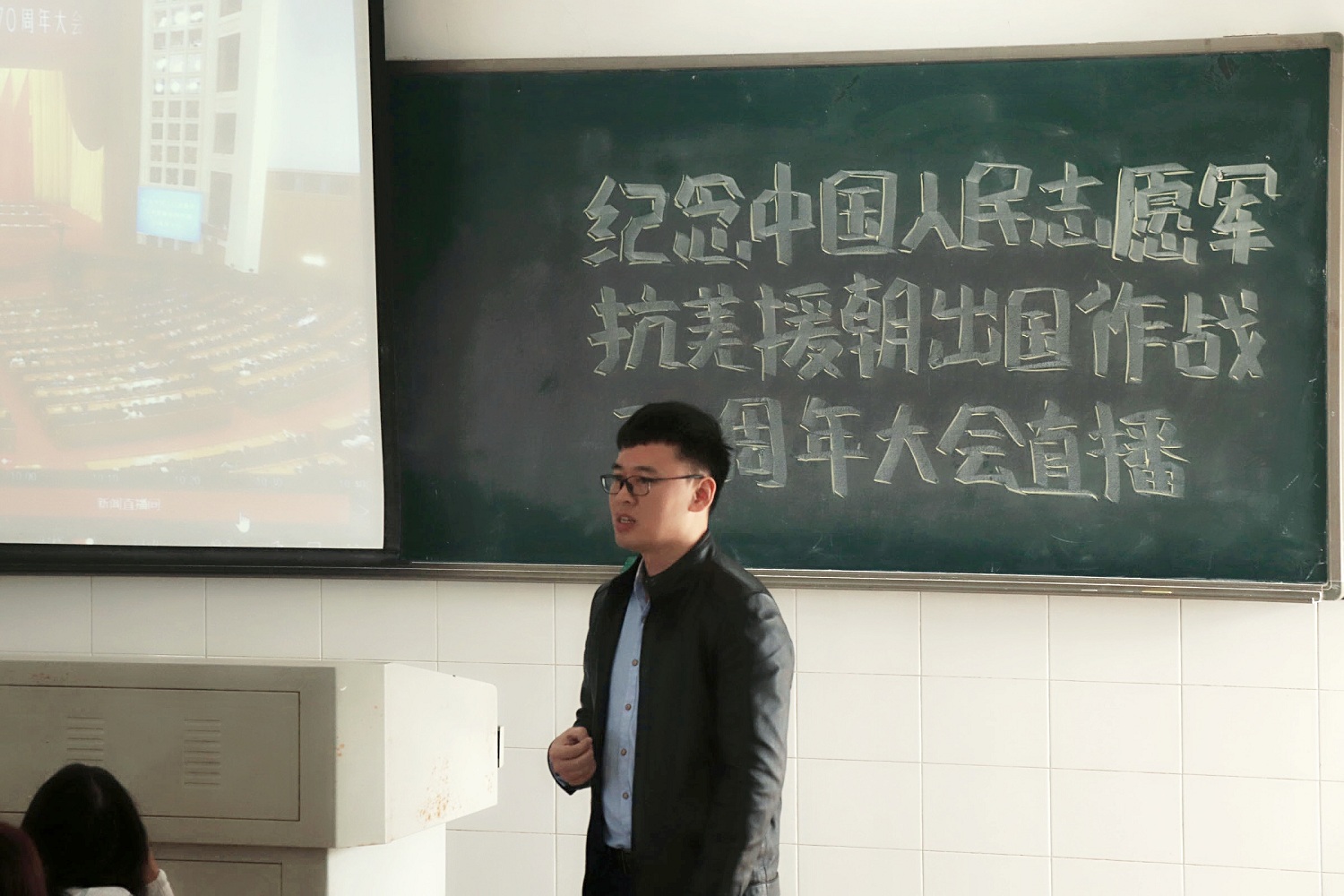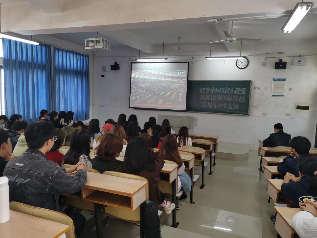 10月23日上午10点,永利官网组织师生代表收看纪念中国人民志愿军抗美援朝出国作战70周年大会,聆听习近平总书记的重要讲话,缅怀为保家卫国牺牲的革命先烈,弘扬爱国主义与国际正义。