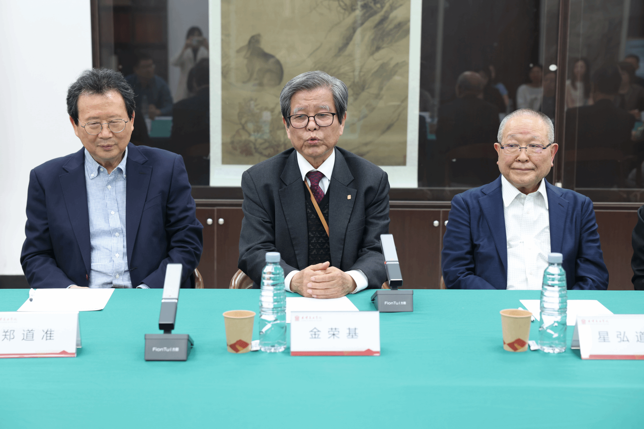学校党委副书记、院长邱志杰教授代表beat365英国官方网站热情接待了来访嘉宾。日方代表团由日本书法院理事长星弘道、全日本书法联盟副理事长辻元洋一、日中文化交流协会专务理事中野晓、日本书法院副理事长山内香鹤、武藏野大学教育学部教授广濑裕之、日本书法院常任理事小林千早共6位书法界艺术家及学者组成;韩方代表团包括韩国书法协会会长金荣基、国际书法家协会会长郑道准、国际书法家协会副会长郑雄杓、国际书法协会事务次长孙昌洛、PHILMUK公司代表金钟键、韩国篆刻协会会长崔载锡、韩日文化交流会议职员朴俞真共7位书法界艺术家及知名人士组成。全国对外友协东亚部二级巡视员郭宁、天津市对外友协副会长黄春艳等陪同访问,beat365国际交流处、中国画学院、津美融合创新研究院相关负责人出席会见。