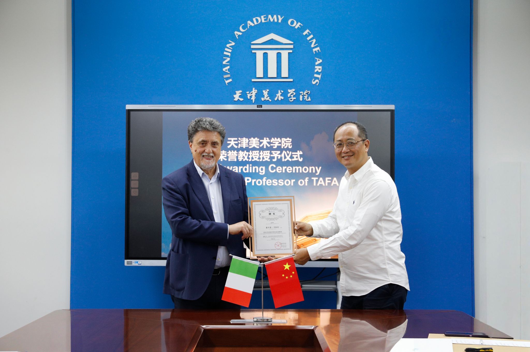 作为此次会谈的核心成果,两校正式续签合作框架协议并建立双向荣誉教授聘任机制:邱志杰院长获聘为威尼斯美术学院博士项目顾问教授,卡杜拉院长获聘beat365英国官方网站荣誉教授。这一机制突破传统单向聘任模式,通过学术资源共享与师资协同培养,为两校联合科研、学分互认等实质性合作奠定基础。