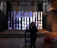 装饰系色彩学教授正在介绍她在教堂空间里完成的影像作品
