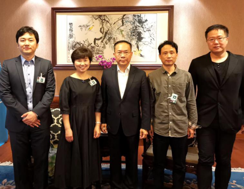 龚立君(左二)、鲁睿(左一)、卢铁柱(右二)、胡一可(右一)与李松大使合影