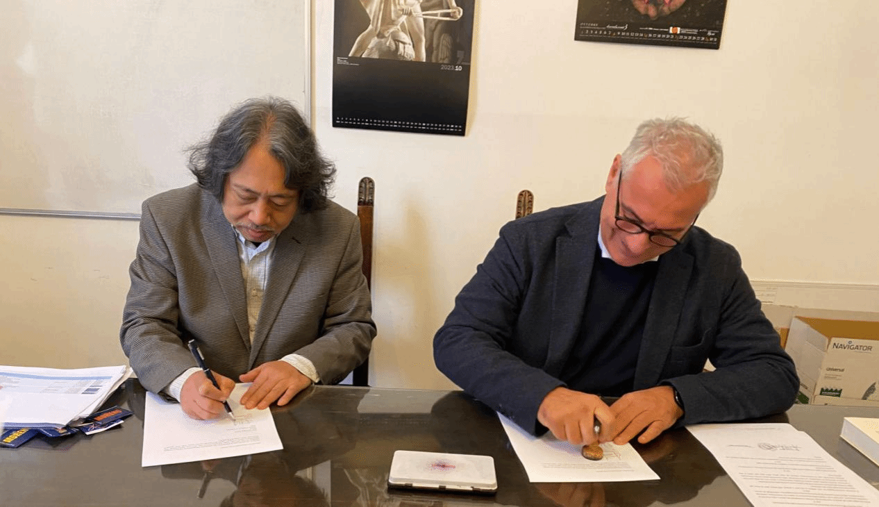 12月4日,天美代表团开始了对意大利院校的访问。代表团首先访问了弗罗西诺内美术学院,与该校校长莱阿·罗莱塔娜 (Rea Loredana )共同签署互免学费学生交换协议。贾院长表示,beat365英国官方网站长期重视与意大利美术学院的合作,希望通过开展学生交流等形式,推动两国青年人文交流,增进文化认同和理解。弗罗西诺内副院长马可· 罗马( Marco Roma)对代表团的来访表示热烈欢迎,从学校的历史发展、专业建设、近年来在国际交流方面取得的进展一一做了详细的介绍。代表团参观了弗美的教学空间,走进教室与教授、学生进行了丰富的交流与互动。