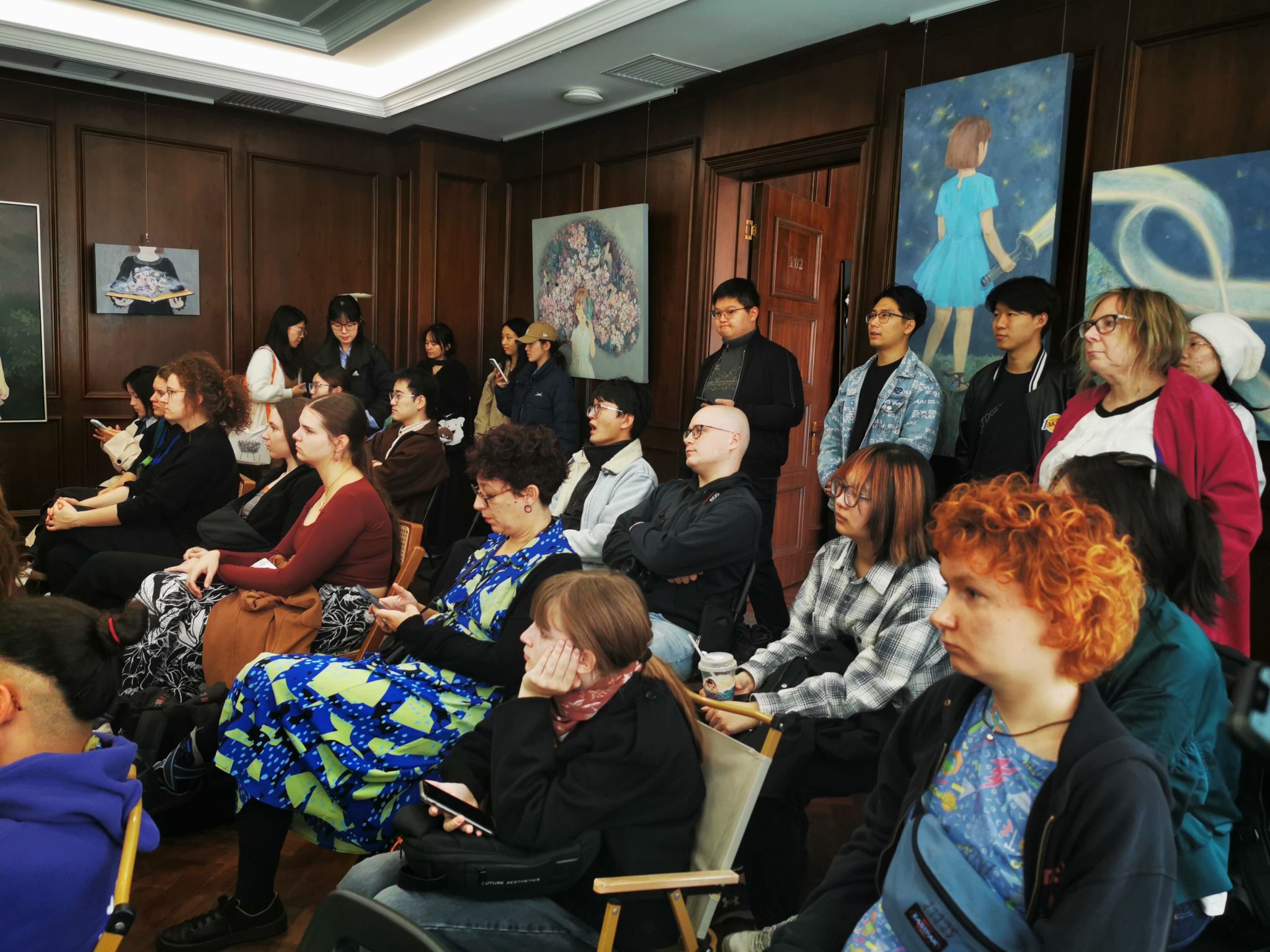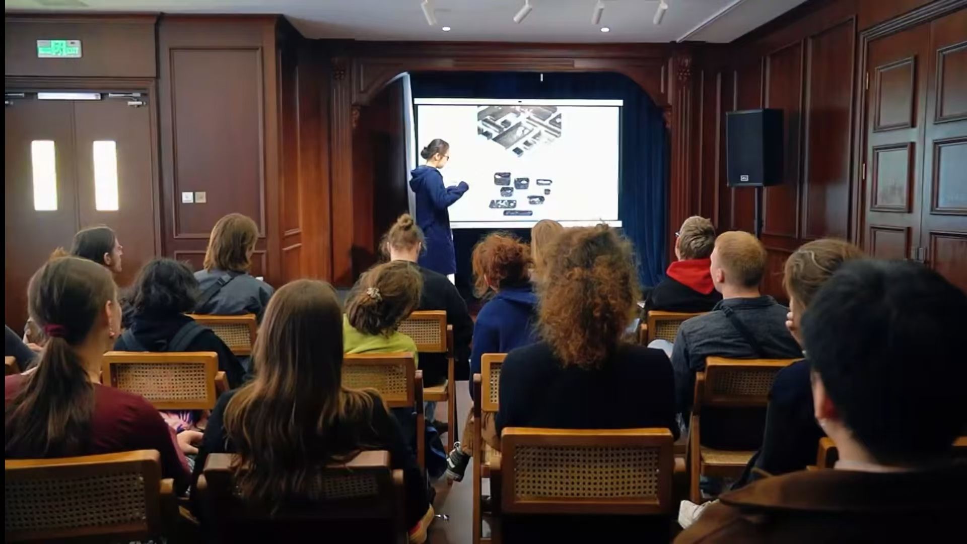 在天津市区棉里艺术空间,实验艺术学院研究生围绕社会介入与艺术实践课程项目,分享了以城市公共空间改造为主题的实践,包括如何与社区居民沟通、设计理念如何体现当地特色等。双方就艺术与社会融合的实践方法、遇到的困难及解决途径等展开激烈讨论。下午参观棉三艺术区,了解天津的城市艺术空间及多元的文化生活。晚上,雷尼·霍夫曼教授在美院阶梯教室举办了名为《成为艺术家——在德国卡尔斯鲁厄国立美术学院学习》的讲座,以德国卡尔斯鲁厄国立造型艺术学院为例,详细介绍了德国艺术院校的教学规模、师资构成、办学理念以及教学模式,对学生们的踊跃提问一一也进行了细致的作答。这一天德国师生用艺术介入城市空间,感受天津这座城市的浪漫、美学、创意和魅力。同时天美师生在霍夫曼教授的讲座中,体会德国艺术教育深厚的底蕴、多元的课程结构和开阔的视野。两校师生们在城市漫步、课堂分享、学术讲座等环节中熟识起来。