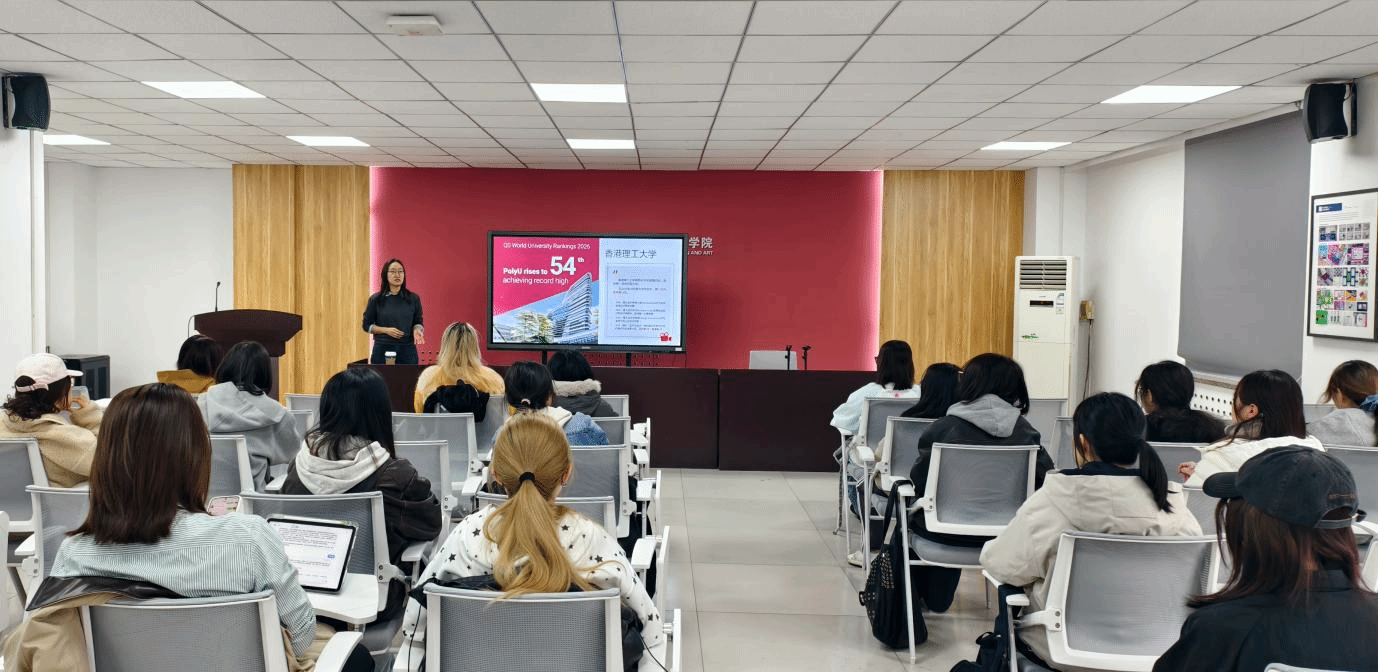 近日,beat365英国官方网站在志成路校区举办香港理工大学设计学院 4+1“多媒体创娱理学硕士”项目专场宣讲会,为艺术设计类专业学生搭建优质升学通道,吸引众多同学参与。