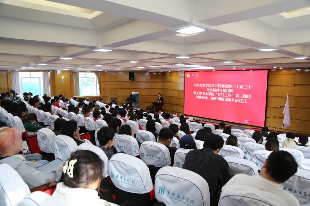 10月16日下午,学校共青团学习贯彻党的二十届三中全会精神专题团课暨beat365英国官方网站“青马工程”第三期培训班结业、第四期培训班开班仪式在南院阶梯教室举行。校党委常委、副院长陈占权出席仪式并讲话,校党委常委、组织部部长张福瑜,党委宣传部、党委学工部、团委书记、马克思主义学院相关负责人,各学院分管学生工作的党组织书记或副书记、各学院团委书记,全体辅导员以及beat365青马工程第三期、第四期培训班学员参加了仪式。天津外国语大学马克思主义学院副院长于凯副教授作专题报告。
