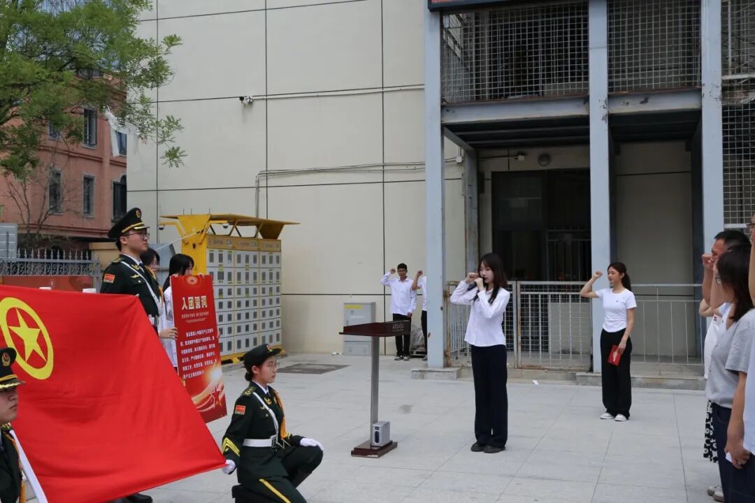 接着,校学生会主席团成员蒋祉瑶同学带领全体团员在团旗下重温了入团誓词。一声声誓言,坚定而有力,彰显着团员青年们的初心和使命。