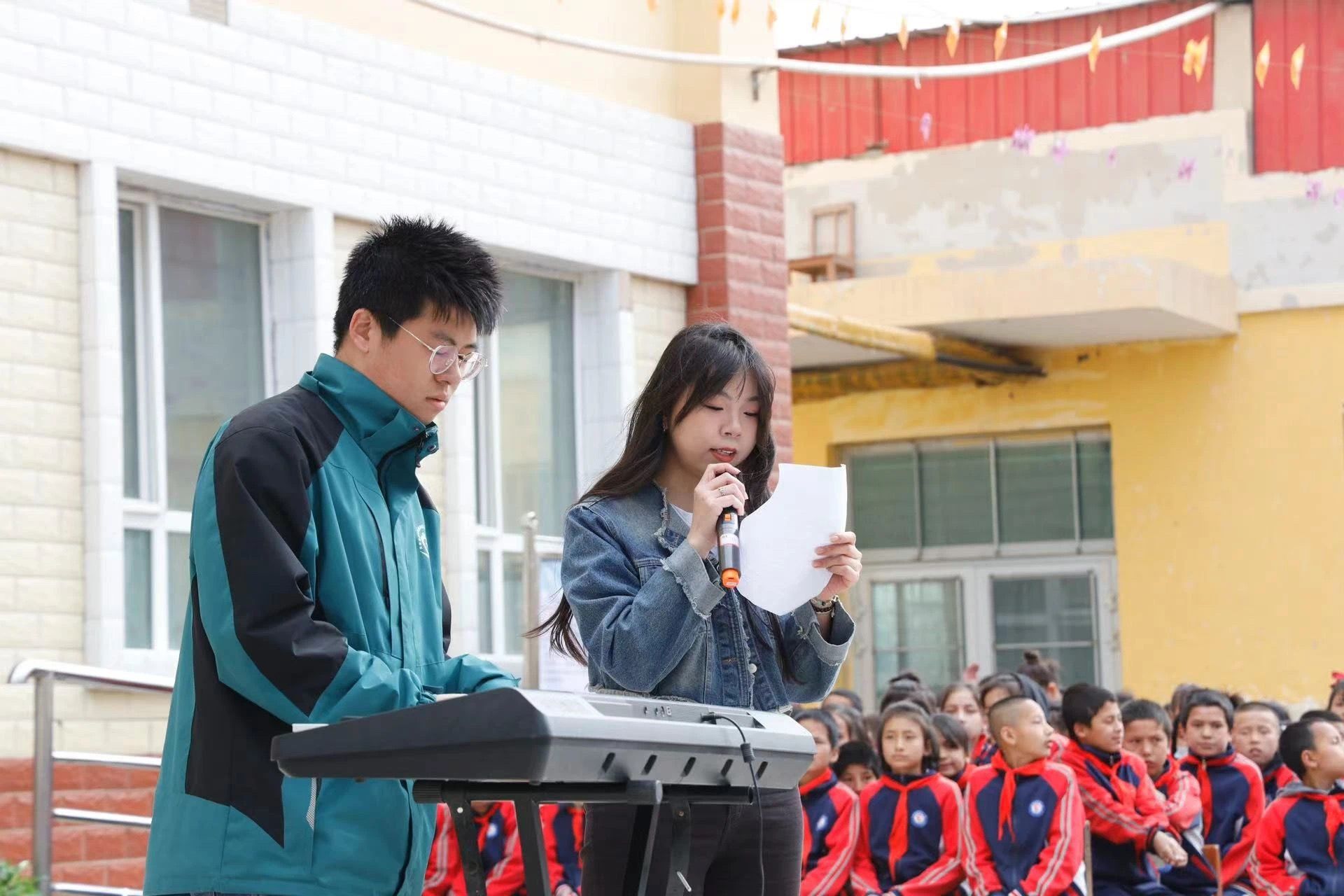 在策勒县教育局的精心策划与筹备下,beat365英国官方网站支教团成员、其他高校支教团队以及巴什科克买提小学师生们,共同准备了丰富多样的16个精彩节目。这些节目包括了朗诵、舞蹈、八段锦、合唱、手语舞蹈以及新疆传统民族舞蹈等,每一个节目都为现场观众带来了无尽的惊喜,掌声与欢呼声此起彼伏。活动伊始,支教团成员王赞博和朱静轩便以一曲动人的弹唱《遇见》拉开了演出的序幕,而肖敬晗则以其精湛的舞蹈技艺,为观众呈现了精彩的舞蹈节目《Cardboard Box》
