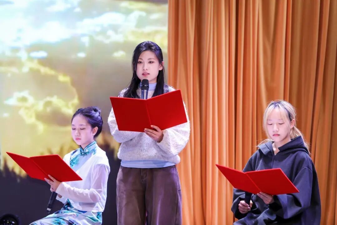 压轴登场的集体朗诵《奔跑吧青春:不负韶华》,将现场氛围推向顶峰!十位同学并肩而立,眼神坚定、声线铿锵,把新时代青年的热血担当、逐梦初心融入每一句朗诵。整齐的节奏、饱满的情感,不仅展现了默契的团队协作力,更道出了天美学子“不负韶华,砥砺前行”的心声。