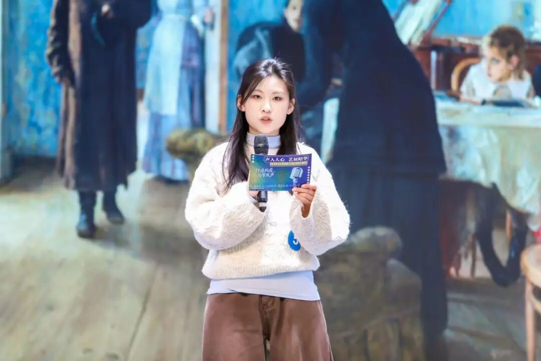 从传统书画的笔墨禅心到现代设计的先锋理念,从工艺珍品的匠心传承到创作背后的人文故事,同学们以精准的表达、独到的视角,让静止的艺术品“开口说话”。他们或细腻捕捉作品细节,或梳理严谨逻辑,或传递真挚情感,让观众仿佛置身流动艺术展,在聆听中读懂艺术的温度与深度。