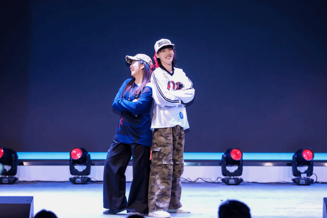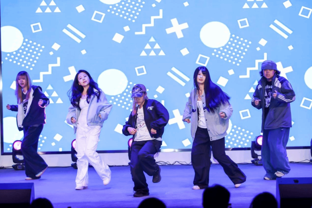 本次活动特邀舞蹈社、街舞社热力助阵,成员们踏着强劲鼓点登场,卡点精准的齐舞、充满力量感的肢体律动瞬间点燃全场,为整场赛事注入满满的青春活力。
