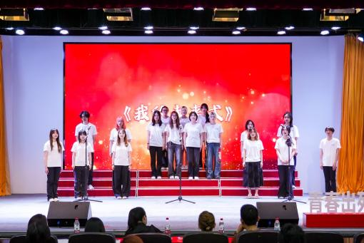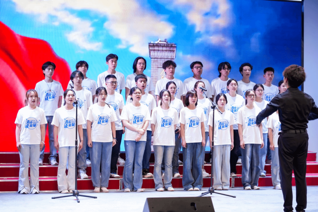 本次展演由校团委主办,经过各二级学院广泛动员、精心筹划。来自各学院的9支参赛队伍,每支队伍将演唱两首曲目,一首为爱国主义经典作品,一首为自选曲目。舞台上,既有红色经典的铿锵激昂,也有当代旋律的温柔回响;既有齐声高唱的磅礴气势,也有声部交织的细腻演绎。多支队伍采用联唱编排、走位变换与视觉呈现的融合设计,让音乐不止于听觉,更成为一场情感与信念交织的沉浸体验。