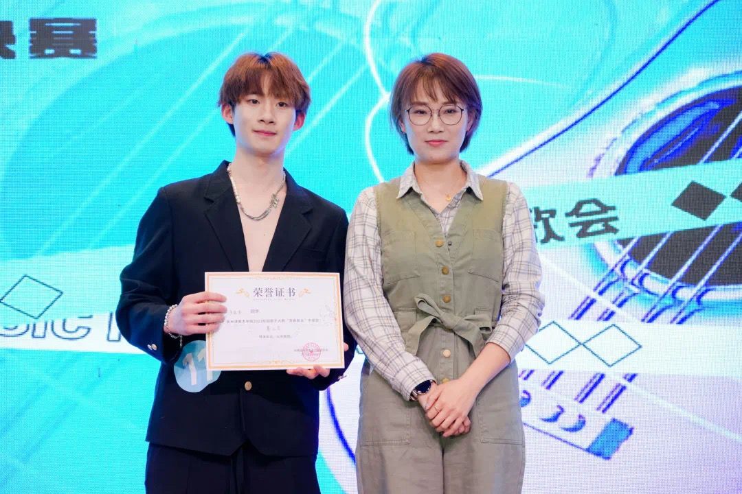 肖启舟同学获得本次歌手大赛第一名,由罗晓颖老师为他颁奖;阙瑞洁同学获得本次歌手大赛第二名,由穆璐老师为她颁奖;章温博同学获得本次歌手大赛第三名,由卢昕然老师为他颁奖。