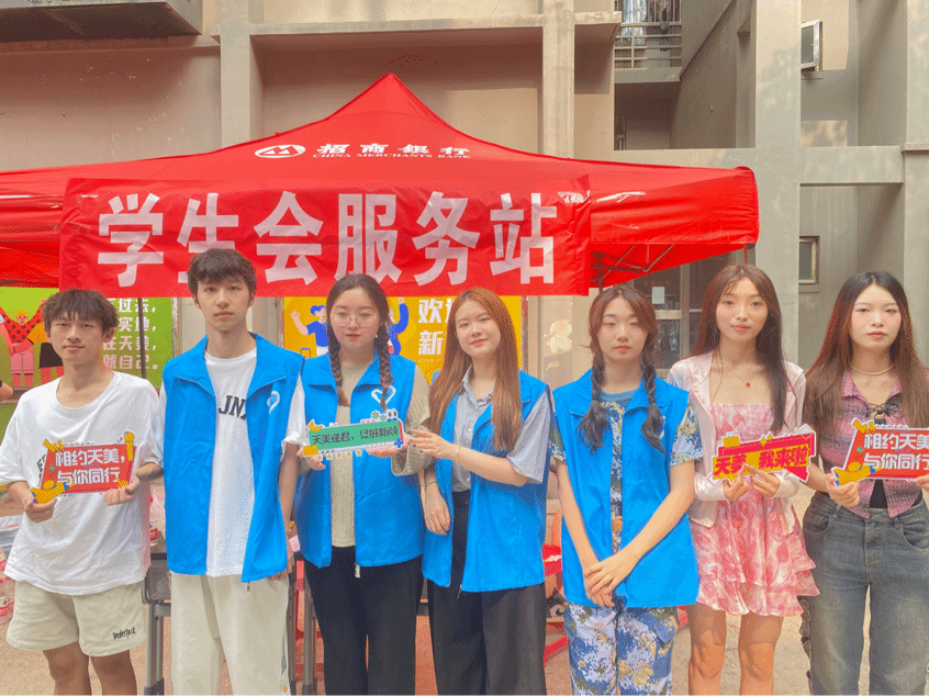 校学生会服务站也在为陆续而来的莘莘学子提供服务,协助新生办理手续,引领他们到宿舍、教学楼,帮助他们搬行李。驱散他们初到天美的陌生无措,让萌新们感受到天美大家庭的温暖热情。