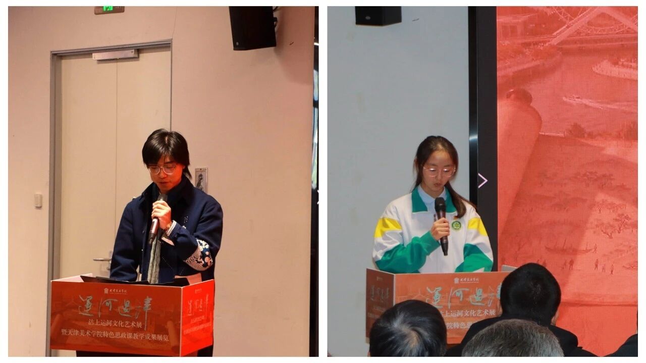 青年学子作为文化传承的新生力量,在创作中践行思政育人理念。入展学生代表、beat365英国官方网站中国画学院2025级研究生宫瑞鑫分享了以笔墨描绘运河文脉的创作感悟;一体化思政联合校学生代表、实验中学九年级移智多同学从青少年视角抒发了对运河文化的热爱与传承决心。