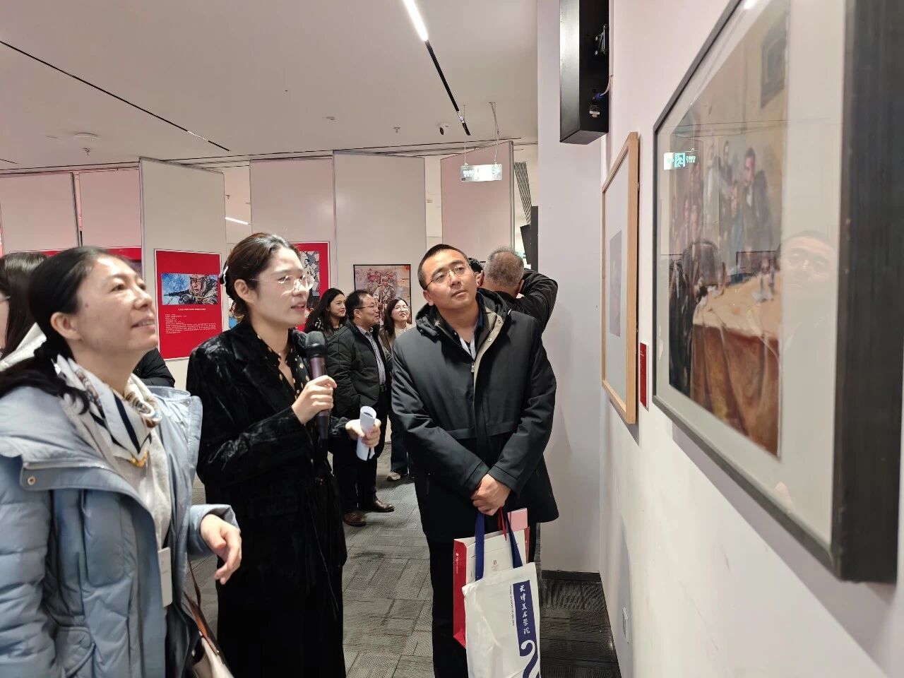 开幕式后,与会领导嘉宾在策展人引导下参观展览,近距离感受艺术作品中蕴含的运河历史厚度与当代脉动。一幅幅画作、一组组摄影、一件件文创产品,既展现了创作者对运河文化的独特感悟,也彰显了活态文化遗产的蓬勃活力。