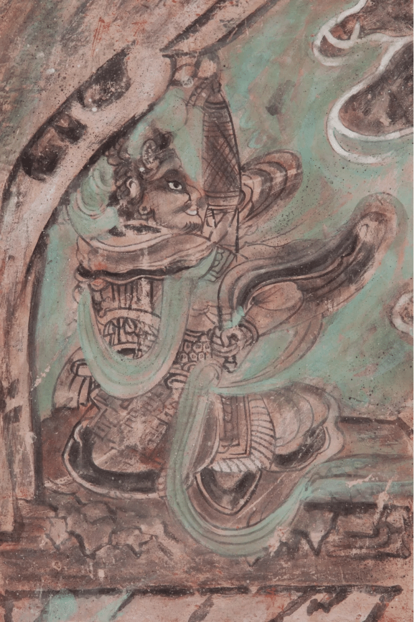 《五个庙石窟3窟右壁》(局部) 板面亚麻布底泥坯壁画