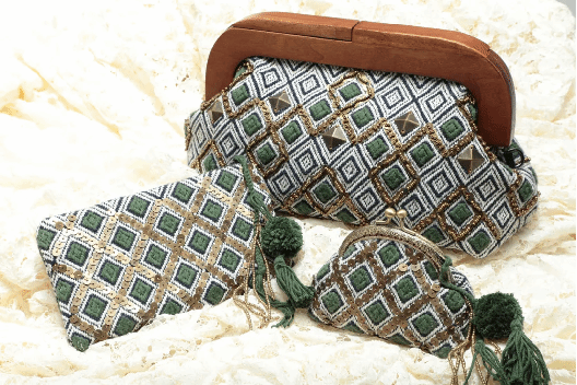 示范:纸样设计与形状构思,布料选择与色彩搭配的构思,布片拼接的构建方法,里布的缝制工艺。