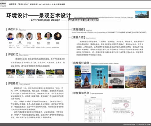 目前该课程是智慧树平台唯一一门景观艺术设计的在线课程,填补课程建设空白,评选为天津市一流在线课程,入选全国艺术硕士专业示范课程。