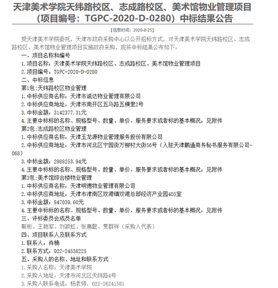 【成交公告】beat365英国官方网站天纬路校区、志成路校区、美术馆物业管理项目